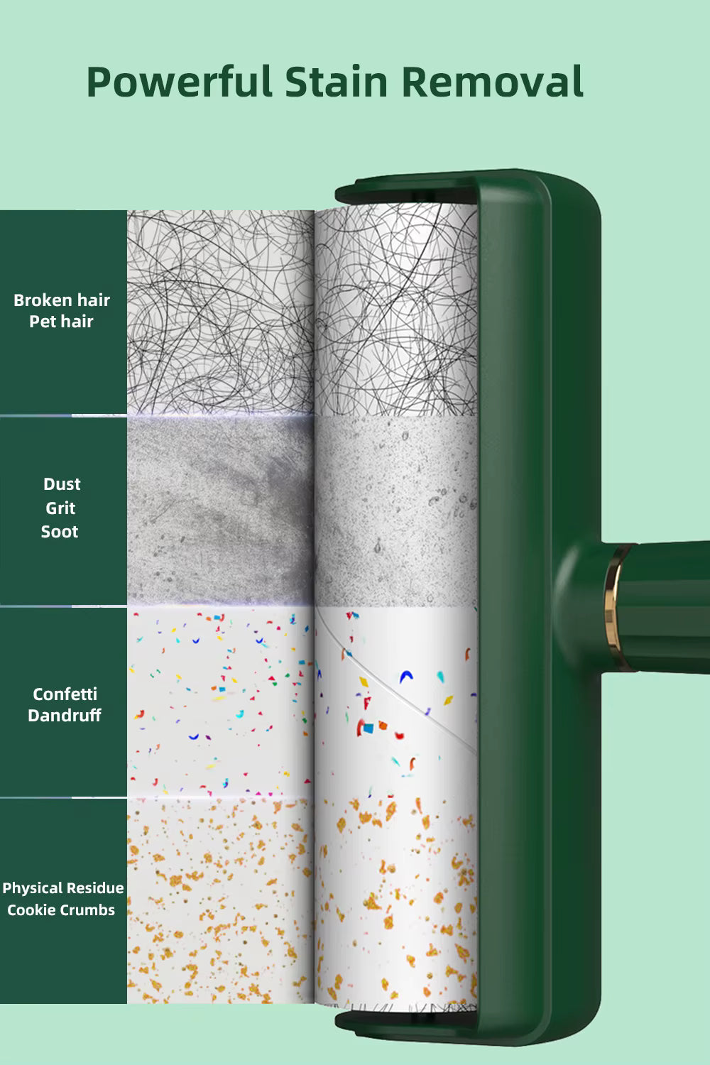 Designed to cover more area in less time, this premium lint roller removes pet hair, lint, and dust from clothes, carpets, sofas, and bedding — all without sticky tape or batteries.